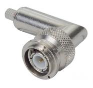 RF CONNECTOR/BNC, right angle, dual crimp, 50 Ohms, 4 GHz. ROHS compliant.