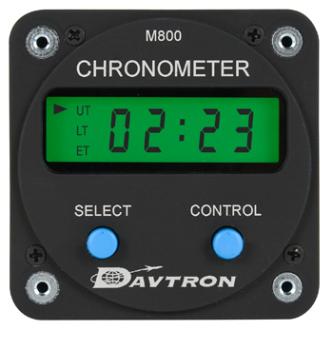 The 800-28V-N/B is a 24-hour digital clock. It has two buttons to control the clock and two display modes: universal time, local time, and elapsed time function. A memory feature stores the current time. This version is NVG compatible with a green backlight.