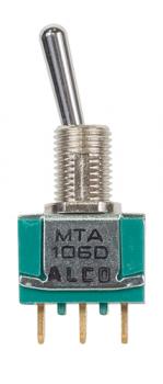 TOGGLE SWITCH/SPDT (single pole double throw), hole mount, terminal seal, gold flash over silver plating, green, on-off-on